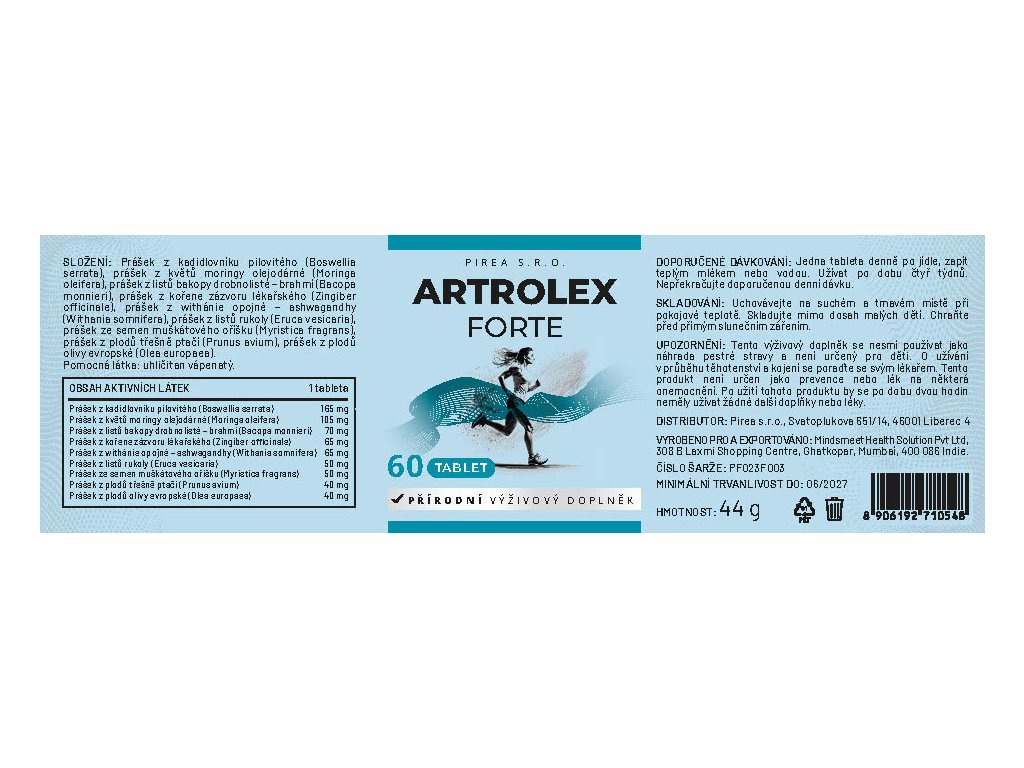 | Boswellia serrata (Kadidlovník indický) | Tradičně využívaná v ajurvédě pro pohyblivost kloubů | Přispívá k udržení normální funkce kloubů a jejich pohyblivosti |